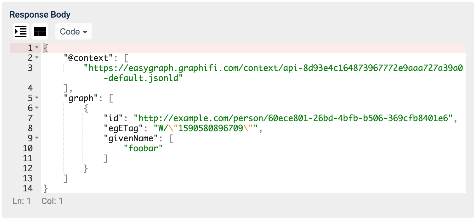 Click the Play button on the left-hand side of the UPDATE request title bar. You should see a success message in the request title bar and the tab should change to the Response tab. The ‘Response Body’ of the request should look as below.