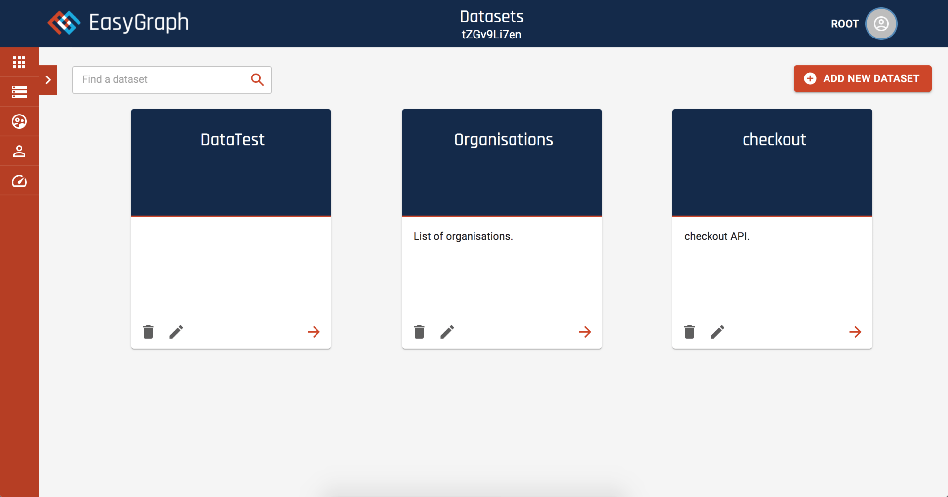 During development you might want to work with multiple APIs, or multiple developers might want to use a single EasyGraph instance. This might be for cost reasons or you might just want to set up APIs for multiple small datasets. You can now do this by configuring EasyGraph. If the multiple dataset configuration option is set to true you can manage multiple datasets.