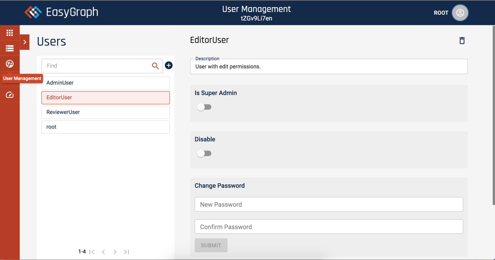 If authentication is enabled you can manage users through the EasyGraph UI.