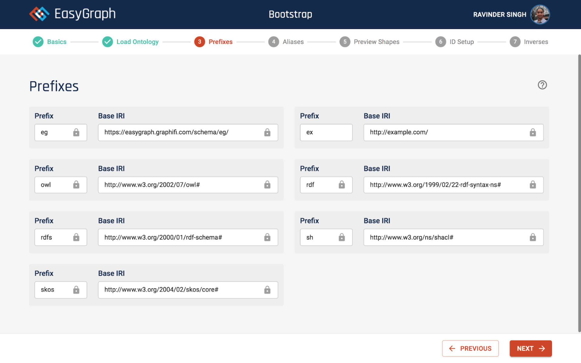Click the NEXT button. You should see the Prefixes screen as below.