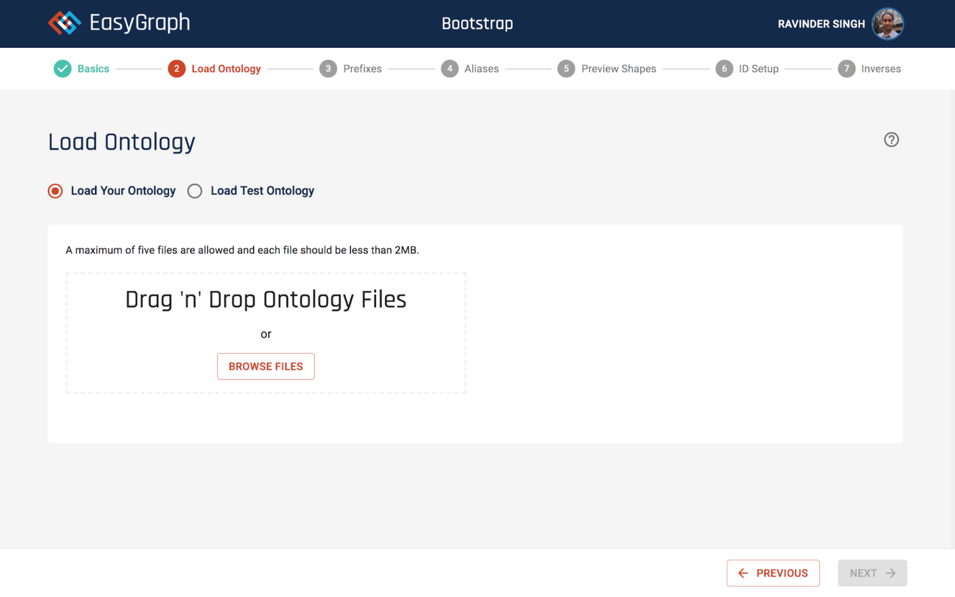 You should now see a Load Ontology page as below.