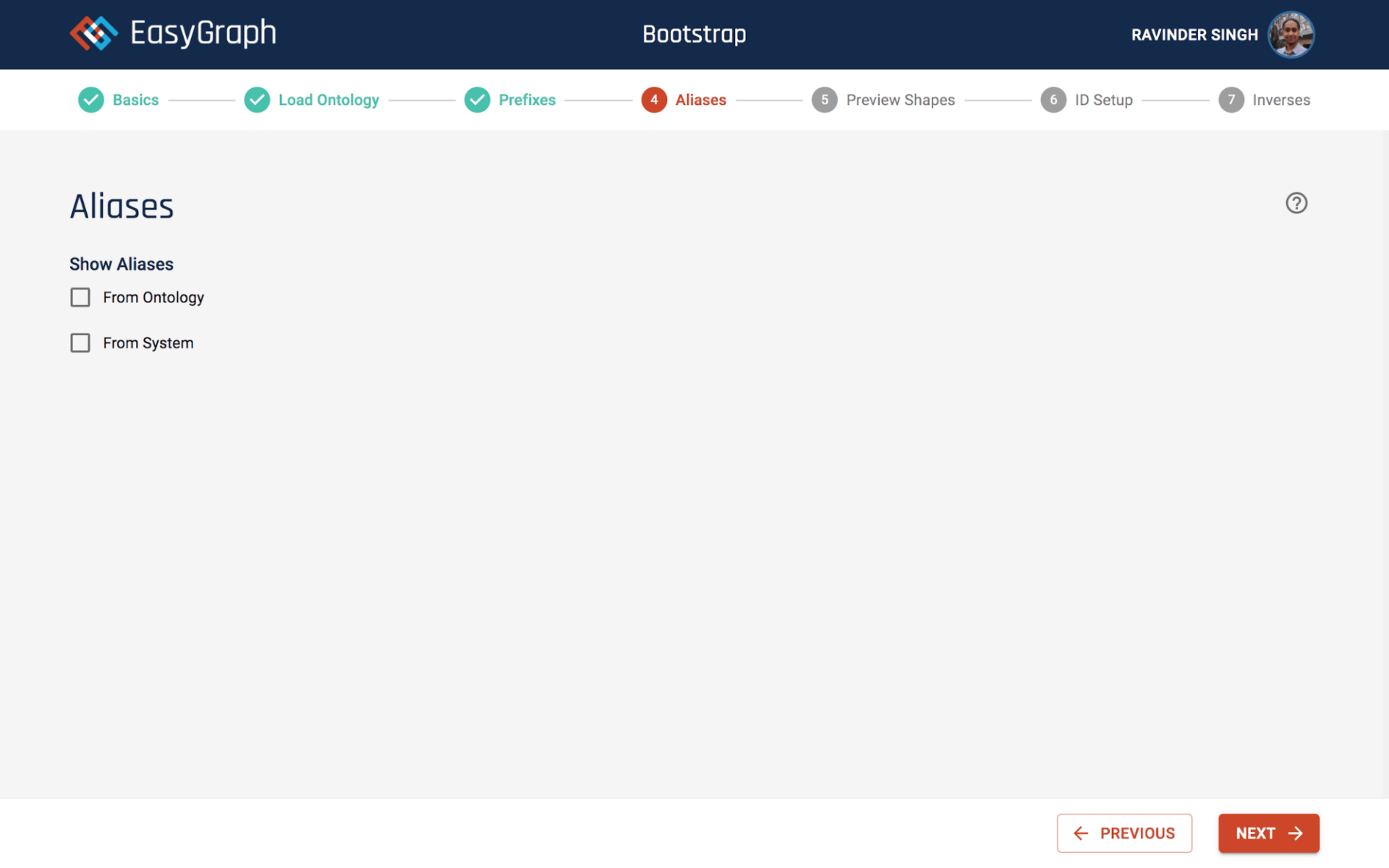 Click the NEXT button and you should see the Aliases screen as below.