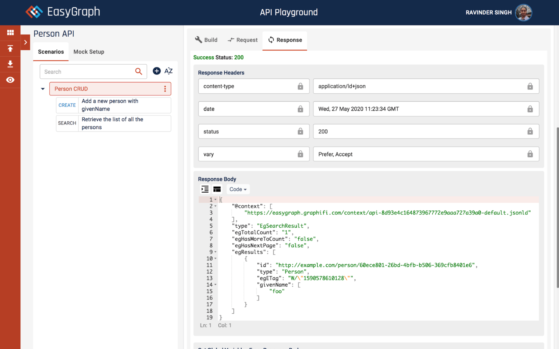In the screenshot above you can see that the SEARCH response property ‘egResults’ contains the resource that we created earlier.