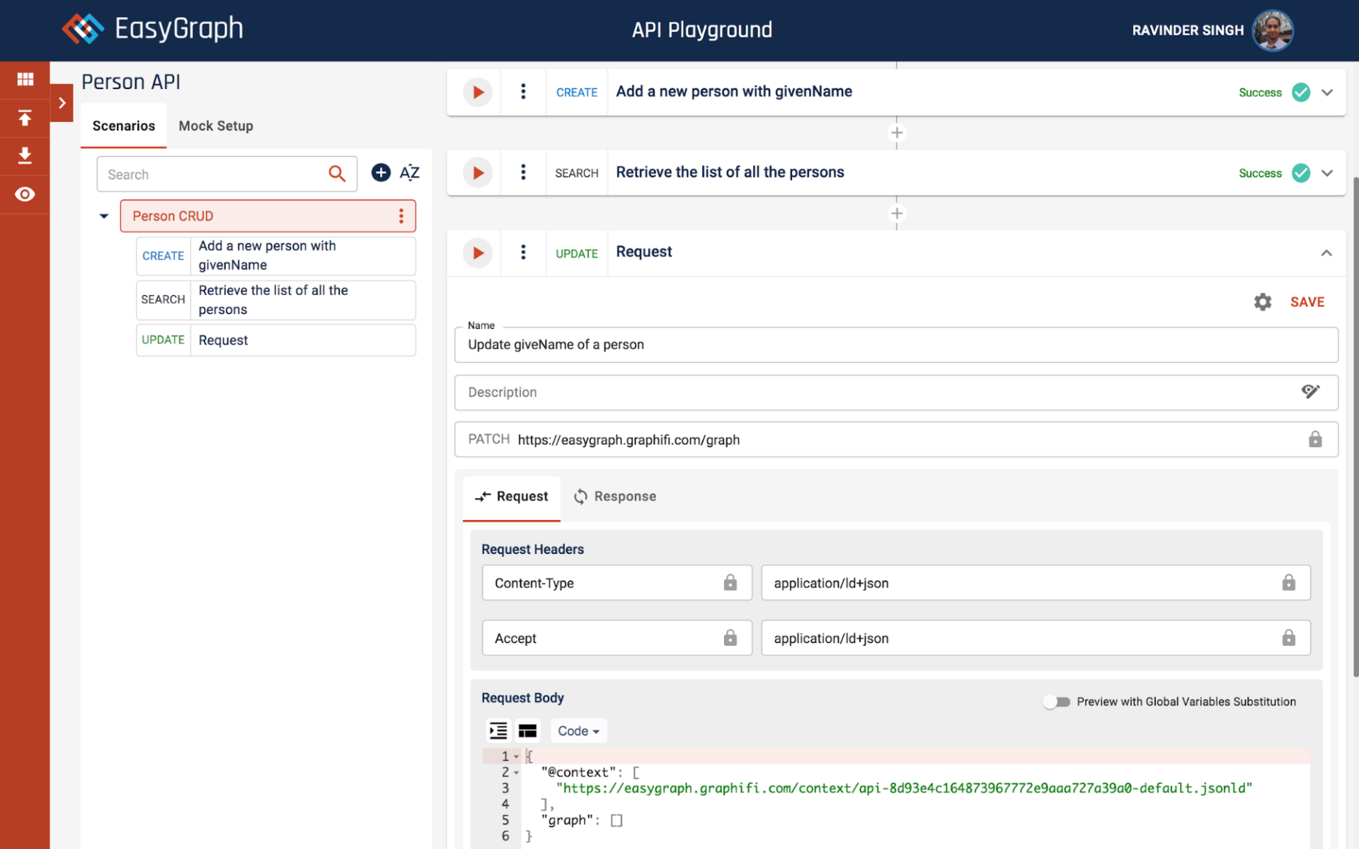 As shown in the above screenshot EasyGraph has updated the ‘givenName’ of the person and the response also contains the new ETag for the resource. Note that the ‘egETag’ property value might be different for you.
