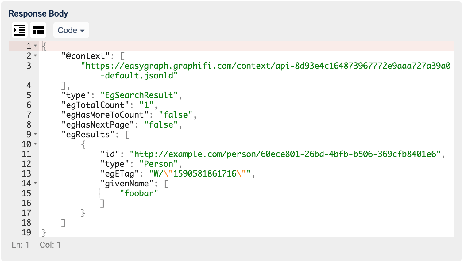 In the search request try to type some other value for givenName property. This should return an empty array for ‘egResults’.